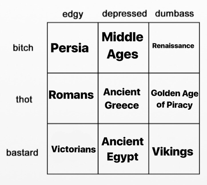 gamerpyrope Uncategorized August 10, 2018December 10, 2018 1 Minute norsesuggestions: silverseapunk: my hot take on this tag yourself meme: history edition Vikings, bastard dumbasses you say? 🤔 Actually, painfully accurate Share this: Share on X (Opens in new window) X Share on Facebook (Opens in new window) Facebook Like Loading... Related Published by gamerpyrope View all posts by gamerpyrope Published August 10, 2018December 10, 2018