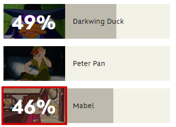 IF MABEL WINS THEN PEOPLE CAN LIKE GO TO WALMART AND GET MABEL FIGURINES AND THAT WILL REALLY HELP THE SHOW AND POSSIBLY ENCOURAGE MORE MERCHENDISE TO BE MADE